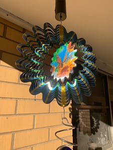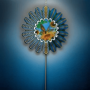 30 cm stainless steel epoxy coated, glitter finish. When spinning gives the appearance of the butterflies wings flapping.